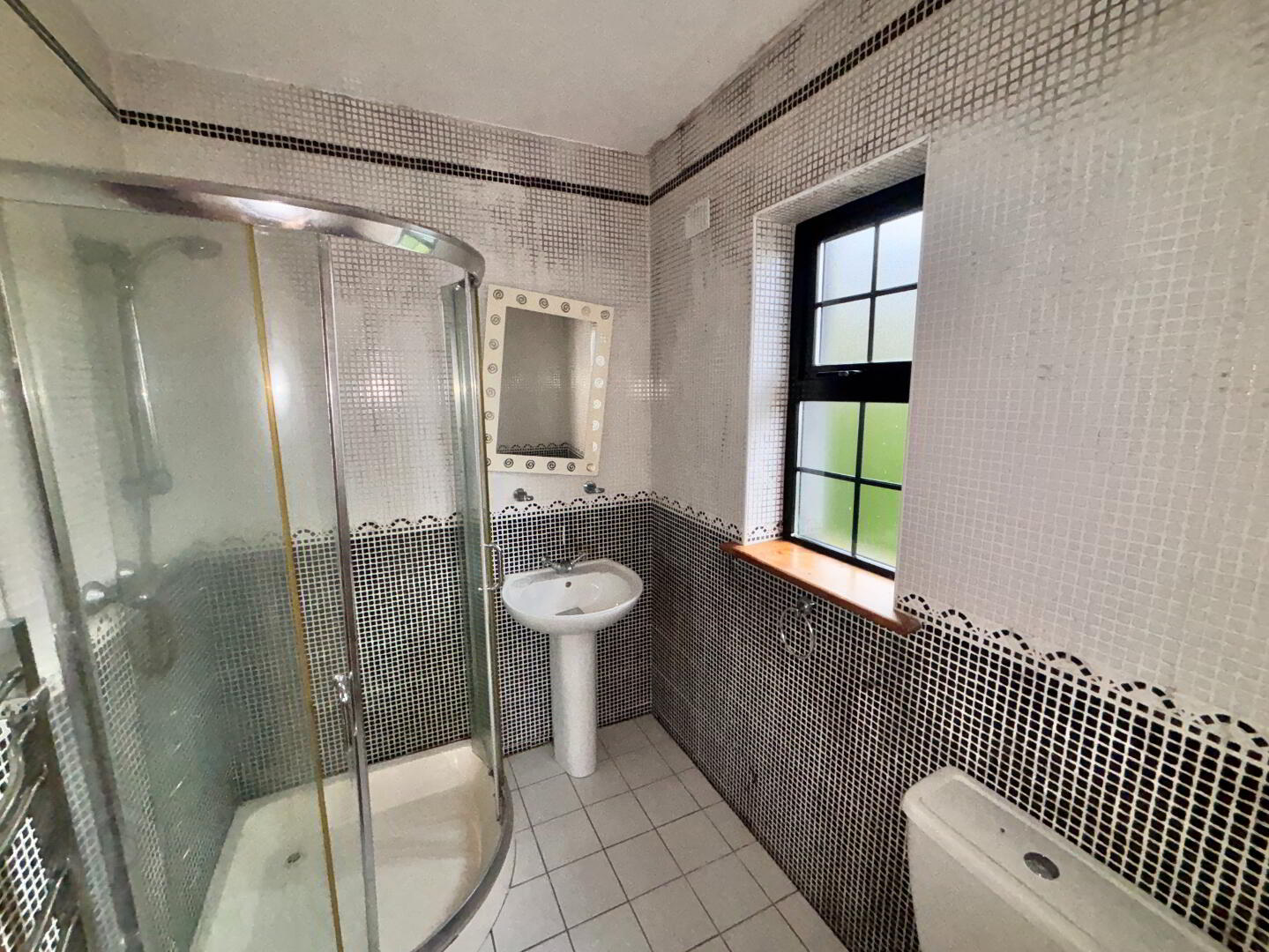 2.37m x 1.15m Toilet partially tiled.