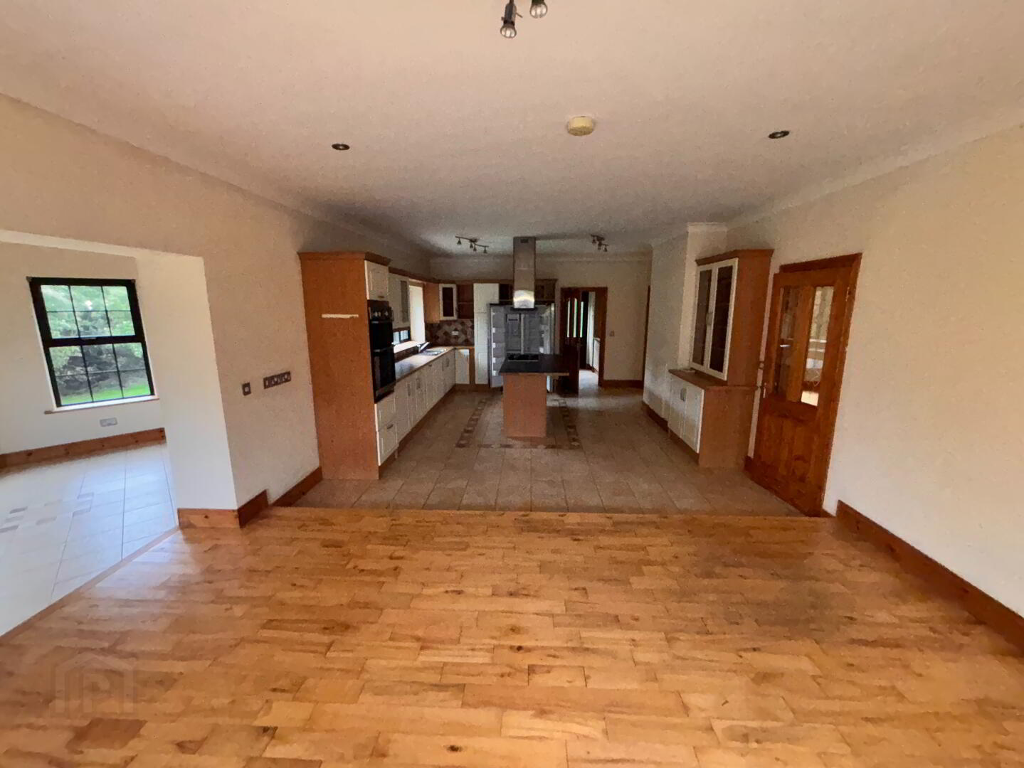 solid wood floor in dining area). Extensive fitted units and double access to conservatory area.