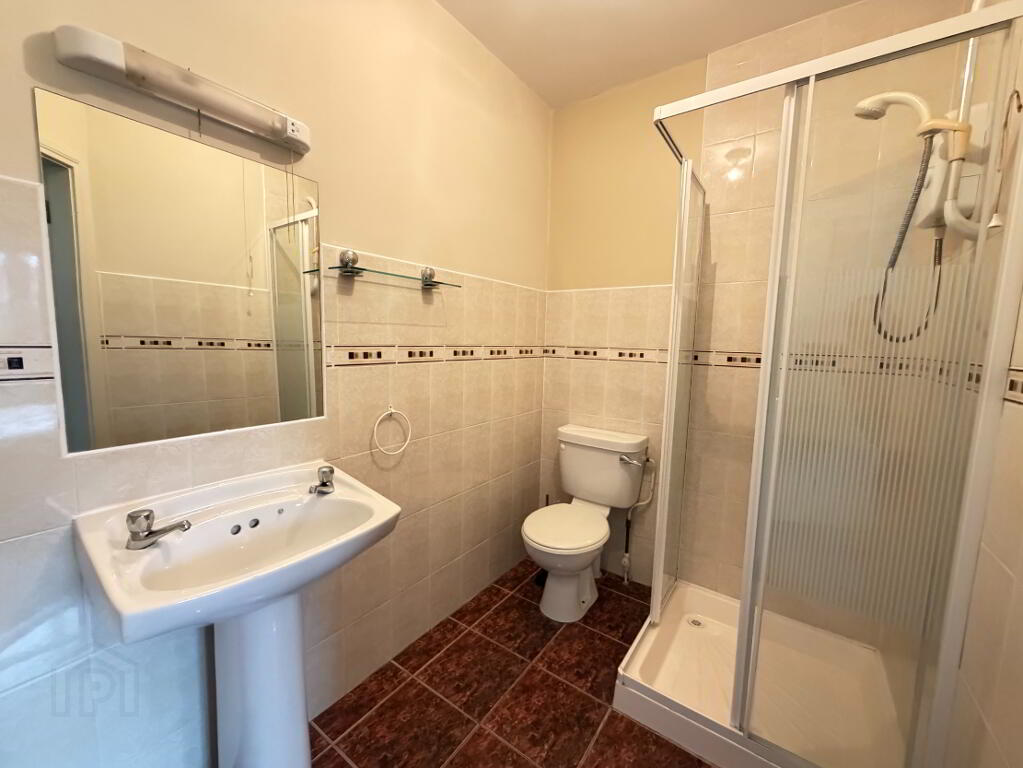 2.21 m x 1.58 m Ensuite, partially tiled with electric shower.