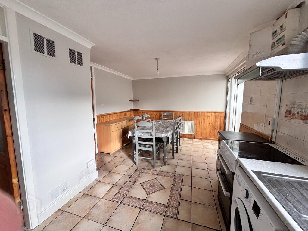 6.23 m x 3.63 m Open plan Kitchen, tiled floor, double patio doors leading to sunroom.