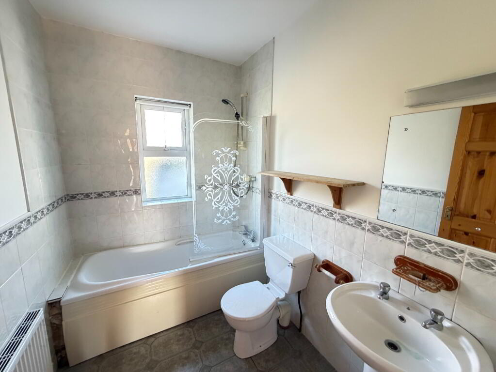 2.12 m x 1.56 m Family Bathroom fully tiled with power shower.